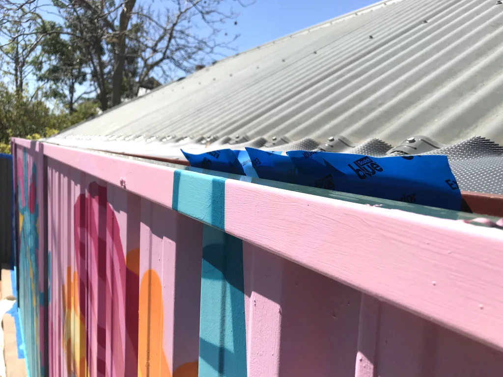 For some areas, you will get a much better result and also use less tape if you make the tape ‘stand up’. This technique works really well on edges of walls, or in this case the top of the fence. For this project, it meant any overspray didn’t go on to the roof. It encourages the paint particles to go up and they will dry, rather than floating down and sticking to the roof surface.